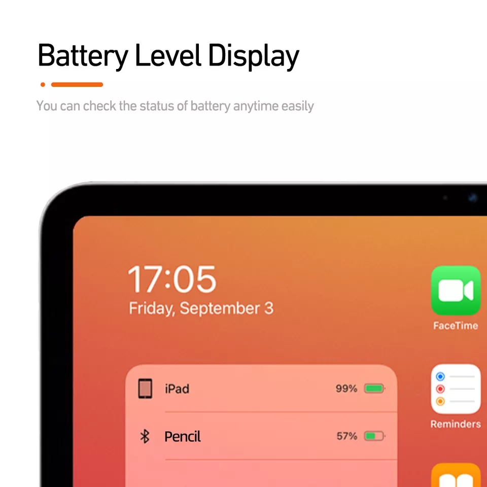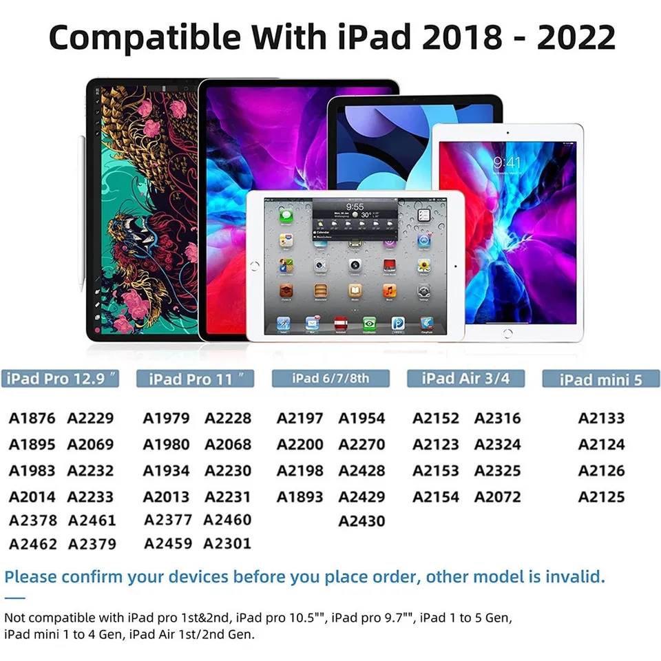 این قلم با دستگاه های زیر سازگار می باشد : iPad ۲۰۱۸-۲۰۲۱ Series . for iPad Air ۱۰.۹ inch (۴th Generation/۲۰۲۰). for iPad ۹.۷ inch (۶th generation/۲۰۱۸). for iPad ۱۰.۲ inch (۷th generation/۲۰۱۹ & ۸th generation/۲۰۲۰& ۹th generation/۲۰۲۱). for iPad Air ۱۰.۵ inch (۳rd Generation/۲۰۱۹). for iPad mini ۷.۹ inch (۵th generation /۲۰۱۹ & ۶th generation/۲۰۲۱). for iPad Pro ۱۱inch (for iPad Pro/۲۰۱۸ & ۲nd generation/۲۰۲۰ & ۳th generation/۲۰۲۱). for iPad Pro ۱۲.۹ inch (۳rd generation/۲۰۱۸ & ۴th generation/۲۰۲۰& ۵th generation/۲۰۲۱). توجه کنید که با دستگاه های اشاره شده در زیر سازگار نمی باشد : — NOT APPLY TO the early version of iPad, e.g. iPad pro ۱st&۲nd gen, iPad pro ۹.۷&#۳۴;&۱۰.۵&#۳۴; (Before ۲۰۱۸) pro ۱۲.۹&#۳۴; ۱-۲ Gen, iPad mini ۱-۴ Gen: iPad Air ۱-۲ Gen,and iPhone, Android, Microsoft devices.